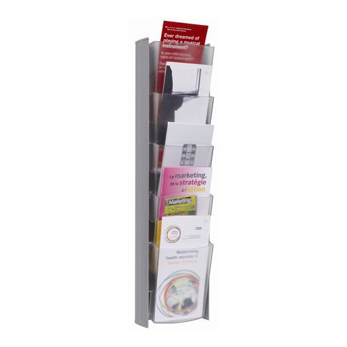 Držiak, katalógový nástenný, 5 priečinkov, strieborný