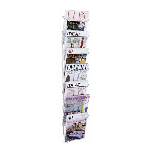 Nástenný prezentačný stojan, kovový, na katalógy, A4, 7 priehradok
