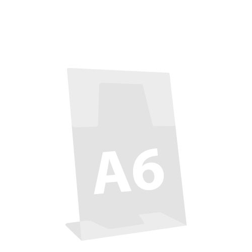 Reklamný stojan na dokumenty v tvare L - naklonený. Formát A6 / 105 x 148 mm. Vyrobené z tvrdého PVC. Na použitie pre letáky, katalógy alebo dokumenty. Ľahko sa čistí.