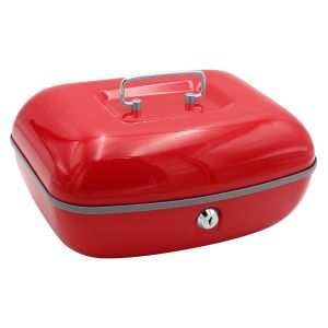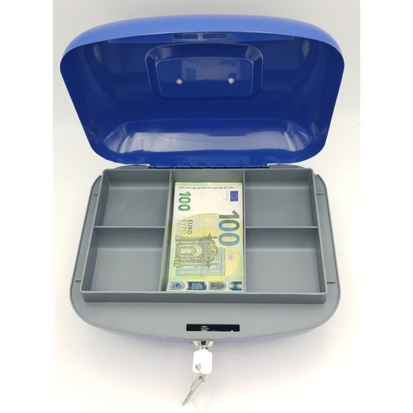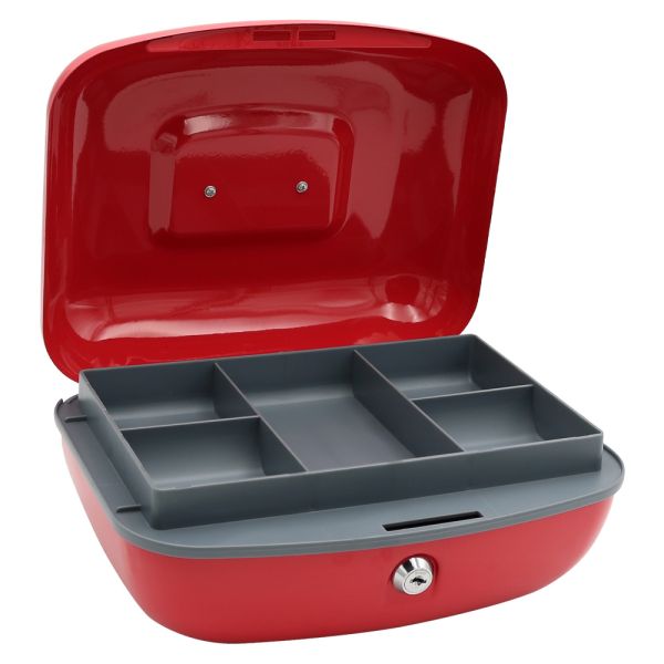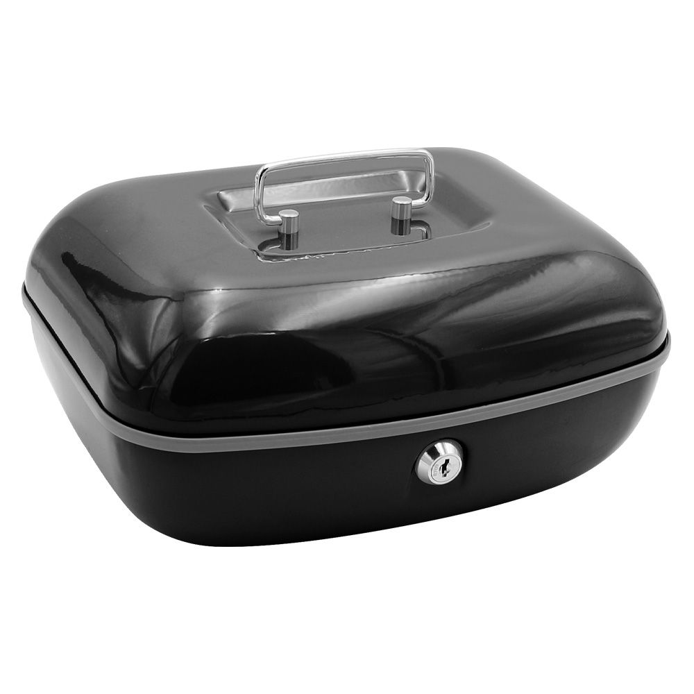 Uzamykateľná pokladnička z kvalitnej ocele v modernom dizajne s plastovou priehradkou na mince a 2 kľúčami.(rozmery: dĺžka 260 mm x šírka 204 mm x výška 123 mm).