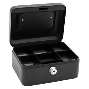 Uzamykateľná pokladňička vyrobená z kvalitnej ocele, s vyklápacím chrómovým madlom na ľahké prenášanie. vnútro obsahuje vyberateľný plastový mincovník / šesť priehradok pod mincovníkom je priestor…