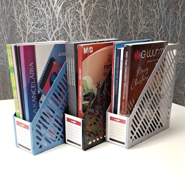 Stabilný skladací stojan z trojvrstvovej lepenky s certifikátom FSC® (drevo na jej výrobu pochádza z lesov, obhospodarovaných udržateľným spôsobom), na archiváciu časopisov, katalógov a pod. do formátu A4. Šírka chrbta 100 mm, otvor na ľahkú manipuláciu, predtlač na popis. Je využiteľný samostatne alebo v kombinácii s archivačnými krabicami. Väčšie balenie 10 ks.Šírka chrbta: 100 mmFarba: modrá