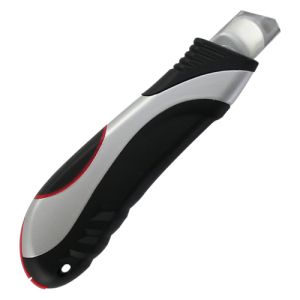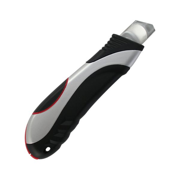 Profesionálny orezávací nôž s vysúvacou čepeľou šírky 18 mm s gumovou rukoväťou. Telo noža je kovové. Celková dĺžka noža: 16,5 cm. Farba: červeno čierna.