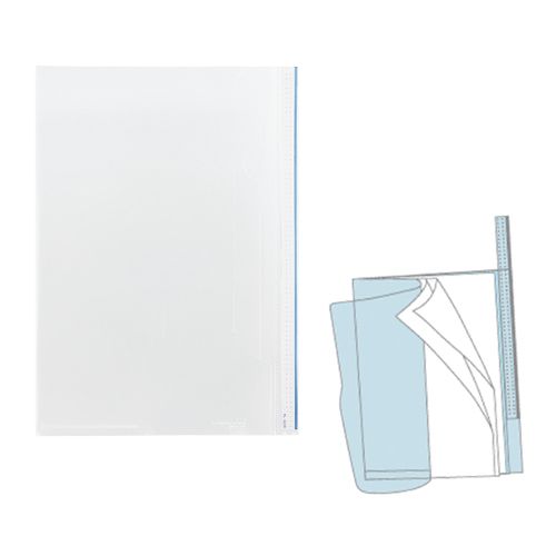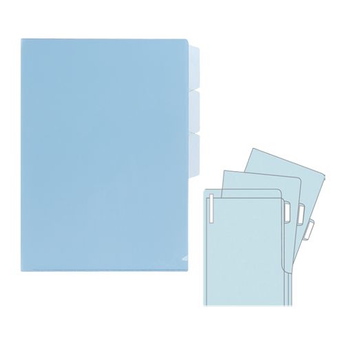 Sada piatich rôznych druhov obalov na dokumenty formátu A4 v jednom balení, vyrobených z vysokokvalitného transparentného poypropylému svetlo modrej farby.
