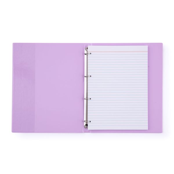 Blok v moderných pastelových farbách s krúžkovou mechanikou, formát A5, 100 linkovaných listov, vnútorná zakladacia zložka. Farba: ružová.