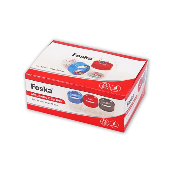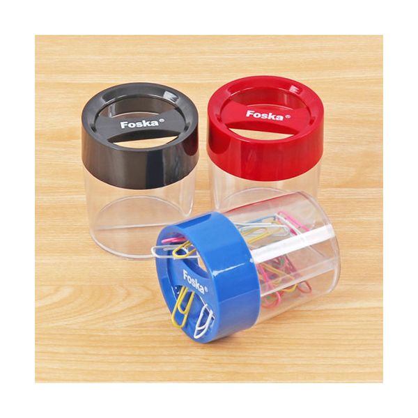 Plastový zásobník na spony vybavený magnetom vo vrchnáku pohára, pre jednoduché vyberanie kancelárskych sponiek. Dodávaný v štyroch farebných prevedeniach.