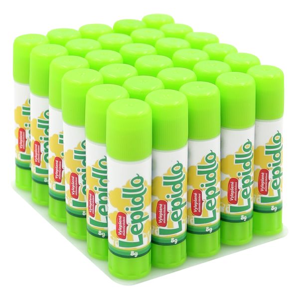 Tuhé tyčinkové lepidlo na lepenie papiera, kartónu, fotografi í, textilu a iných materiálov. Nepoškodzuje a nedeformuje lepenú vrstvu. Zmývateľné vodou. Vhodné do kancelárie, školy a na domáce použitie. Biela farba lepidla po aplikácii zostane priehľadná. Väčšie balenie: 30 ks.