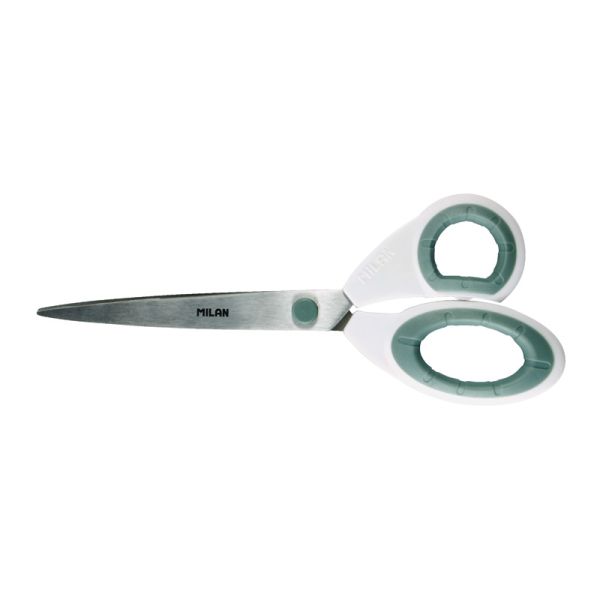 Nožnice MILAN Basic s čepeľou z nehrdzavejúcej ocele so zaoblenou špičkou. Plastová rukoväť. Ideálne pre použitie v škole. Farba zelená. 13,3 cm. Balenie: blister.