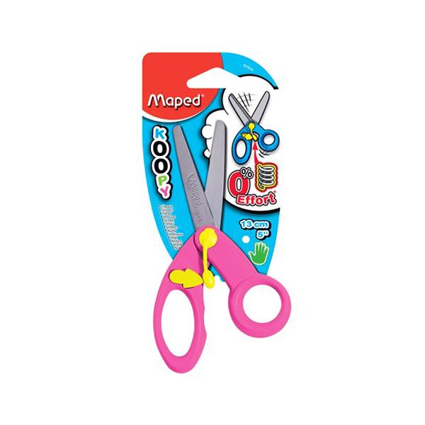 Nožnice "KOOPY" pre škôlkárov s pružinou. Rôzne farebné prevedenia. Zaoblené špičky, čepele z brúsenej nerez ocele. Otvárajú sa automaticky, struna pomáha pri strihaní. Systém je možné deaktivovať a nožnice používať bežným spôsobom. Mix farieb. Veľkosť 13 cm. Francúzka značka MAPED zaručuje vysokú kvalitu, funkčnosť a moderný dizajn.