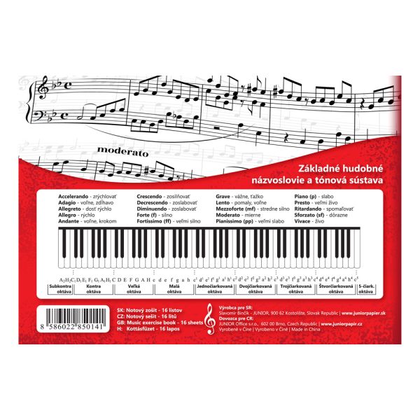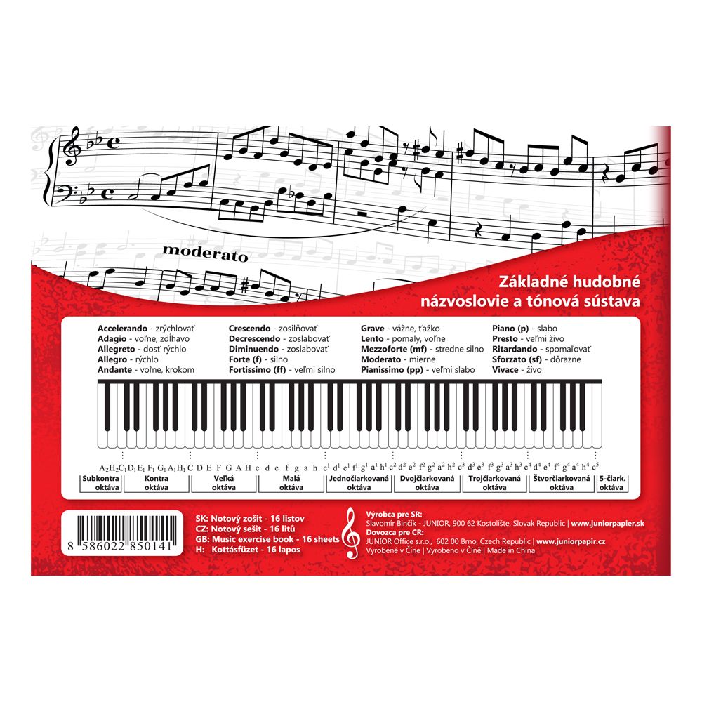Zošit notový je vhodný na hudobnú výchovu, prípadne pre žiakov / študentov navštevujúcich umeleckú školu.