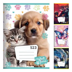 Školský zošit vyrobený z bieleho bezdrevného papiera formátu A6, počet listov 20, linajkový (liniatúra 8 mm). Balenie obsahuje 20 zošitov - mix dizajnov, cena je za 1 kus.