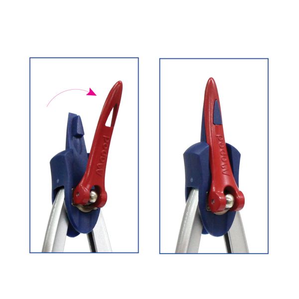 Kovové kružidlo s fixáciou ramien, s 2 mm tuhou. Patentovaný princíp systému Stop System- zabezpečenie ramien v danej polohe. Francúzka značka MAPED zaručuje vysokú kvalitu, funkčnosť a moderný dizajn.