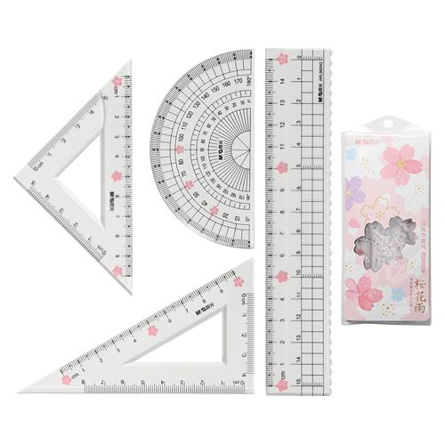 Sada 4 pravítok z kolekcie Sakura. Obsah: Uhlomer, 15 cm pravítko, 2 x trojuholníkové pravítko (10 cm). Sada je v uzatvárateľnom obale.