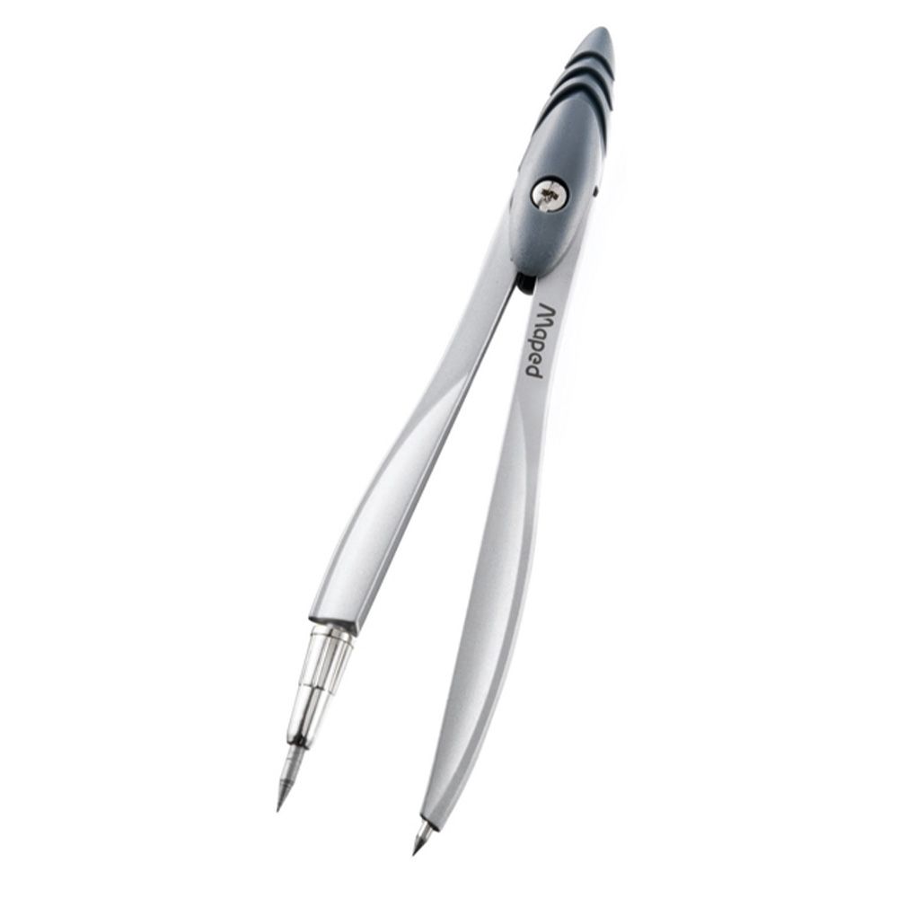Kovové kružidlo s ergonomickým úchopom a 2 mm tuhou. 5-dielna sada obsahuje: kružidlo Study strúhadlo na tuhu skrutkovač balenie s tuhou guma