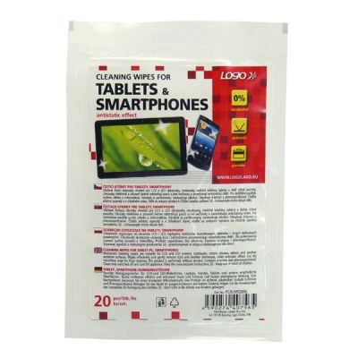 Čist. obrúsky, na tablet, smartphone, uzatvárateľný plastový sáčok, 20 ks, Logo