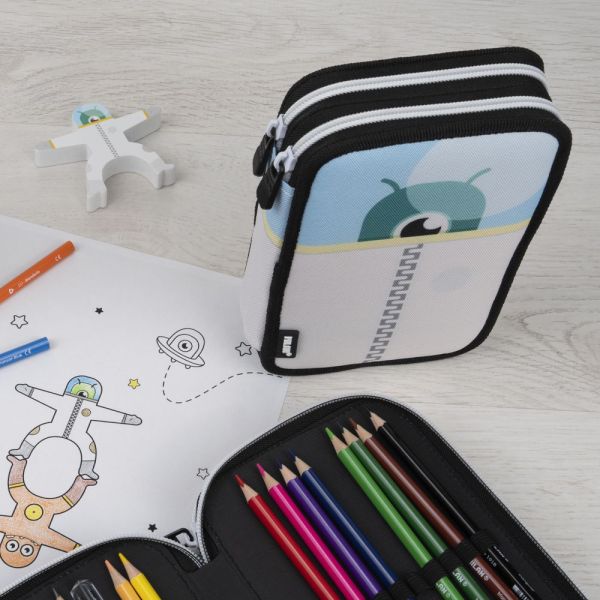 1 - zipsový peračník oválneho tvaru vo vnútri obsahuje: chlopňu s 5 pútkami na farbičky, fixy, ceruzky veľký priestor pre volne ložené školské a písacie potreby Materiál: Polyester