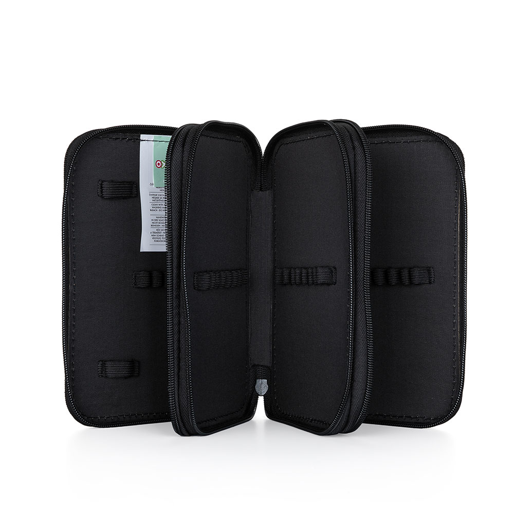 1 - zipsový peračník oválneho tvaru vo vnútri obsahuje: chlopňu s 5 pútkami na farbičky, fixy, ceruzky veľký priestor pre volne ložené školské a písacie potreby Materiál: Polyester