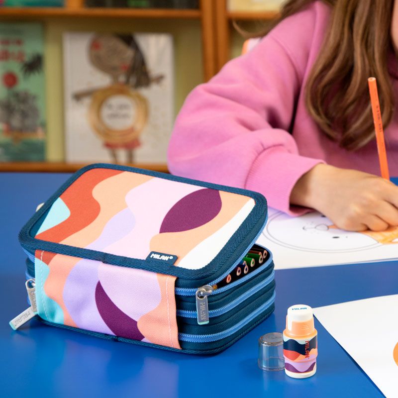 Trojposchodový peračník, ktorý vám umožní mať školské potreby vždy upratané a ľahko dostupné.