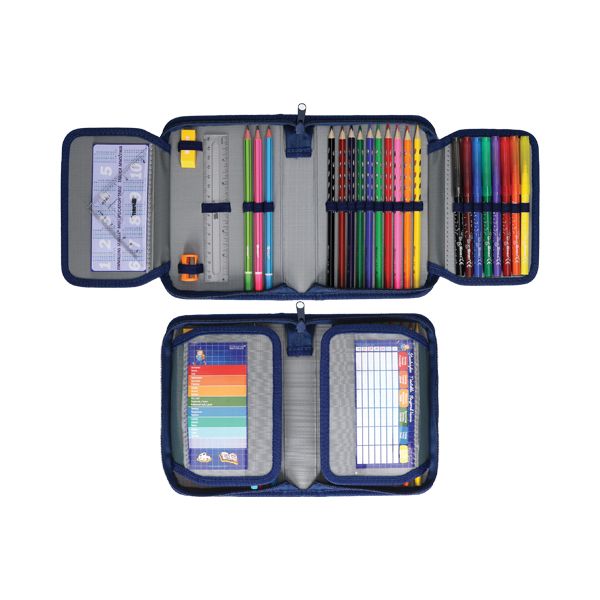 31-dielny plátený peračník s dvojitou klopou JUNIOR: ľahko umývateľný povrch zosilnené steny poskytuje veľa priestoru na udržanie poriadku Materiál: Polyester
