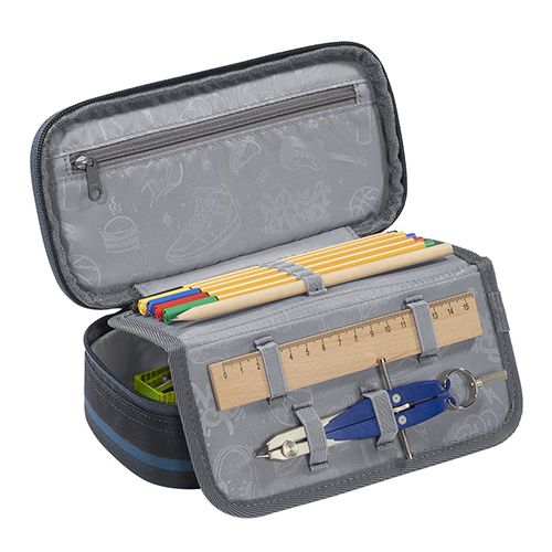 1 - zipsový peračník oválneho tvaru vo vnútri obsahuje: chlopňu s 5 pútkami na farbičky, fixy, ceruzky veľký priestor pre volne ložené školské a písacie potreby Materiál: Polyester