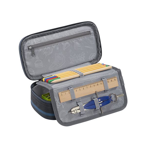 - peračník na perá, ceruzky, pravítka, uhlomer, gumu a ďalšie školské potreby - BEZ VYBAVENIA - vrecko na zips vo veku peračníka - gumičky na zasunutie 6 ceruziek alebo pasteliek - ďalších 7 väčších pútok pre príslušenstvo (napr. pravítko, kružidlo, gumu, malý trojuholník) - okienko na rozvrh hodín - vnútorné veko sa dá otvoriť a zavrieť suchým zipsom - zatváranie na zips - EKOLOGICKÝ VÝROBOK, LÁTKA JE VYROBENÁ Z RECYKLOVANÝCH PET FLIAŠ - vyrobené v súlade s trvale udržateľným rozvojom a so zásadami organizácie bluesign®, ktorých sme hrdým partnerom - vyrobené v prevádzke s dobrými sociálnymi a bezpečnostnými podmienkami pre zamestnanca, člen nadácie Fair Wear Technické parametre: - materiál: polyester - rozmery: v.6 x š.24 x h.11 cm - hmotnosť: 170 g