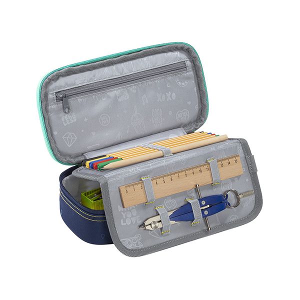 - peračník na perá, ceruzky, pravítka, uhlomer, gumu a ďalšie školské potreby - BEZ VYBAVENIA - vrecko na zips vo veku peračníka - gumičky na zasunutie 6 ceruziek alebo pasteliek - ďalších 7 väčších pútok pre príslušenstvo (napr. pravítko, kružidlo, gumu, malý trojuholník) - okienko na rozvrh hodín - vnútorné veko sa dá otvoriť a zavrieť suchým zipsom - zatváranie na zips - EKOLOGICKÝ VÝROBOK, LÁTKA JE VYROBENÁ Z RECYKLOVANÝCH PET FLIAŠ - vyrobené v súlade s trvale udržateľným rozvojom a so zásadami organizácie bluesign®, ktorých sme hrdým partnerom - vyrobené v prevádzke s dobrými sociálnymi a bezpečnostnými podmienkami pre zamestnanca, člen nadácie Fair Wear Technické parametre: - materiál: polyester - rozmery: v.6 x š.24 x h.11 cm - hmotnosť: 170 g