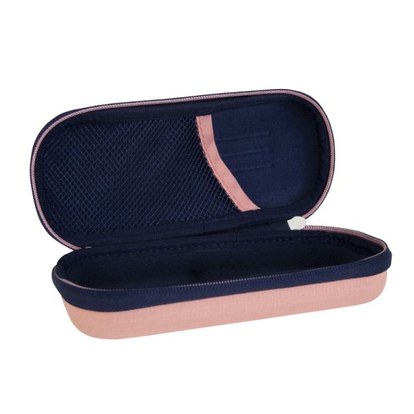 Polotuhý oválny peračník s vnútornou priehradkou zo sieťoviny a zamatovou podšívkou na ochranu obsahu pred možným poškriabaním.