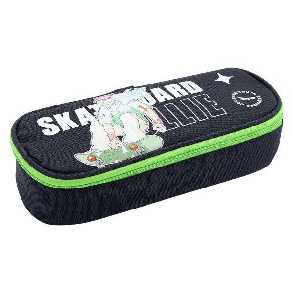 1-zipsový peračník s textilným plášťom spoľahlivo uschová všetky písacie potreby (3 dizajny Skateboard).