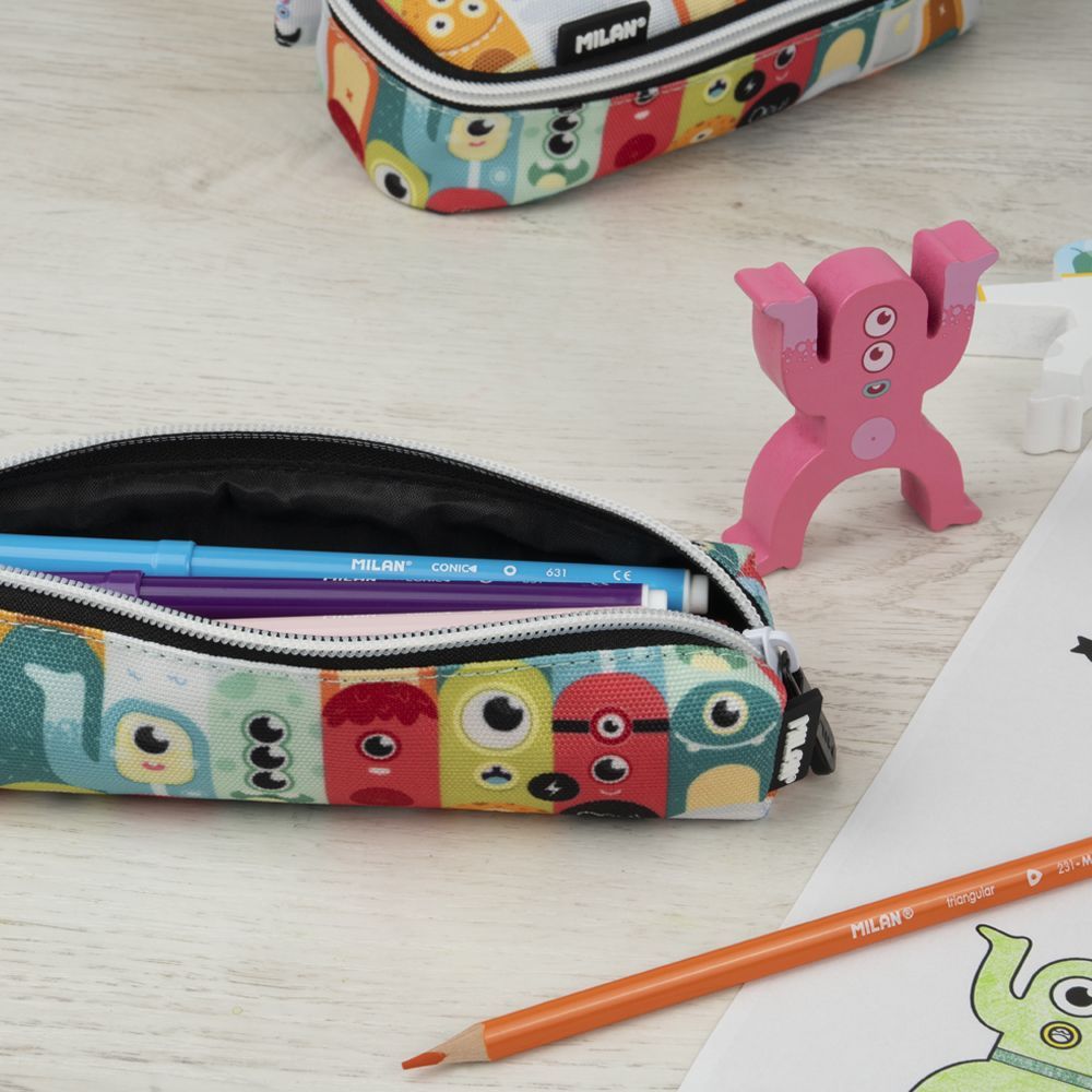 Textilné puzdro na perá s aplikáciou na prednej strane, uzatváranie na zips. Dodávané v rôznych farebných prevedeniech a motívoch.