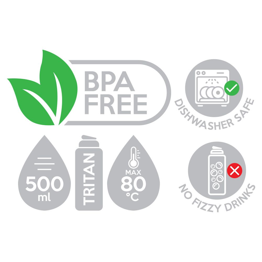 Nový a vylepšený dizajn fliaš na nápoje vo veselých detských motívoch, ideálne do školy alebo na športové aktivity. obsahuje skladaciu slamku, ktorá zabraňuje rozliatiu tekutiny jednoduchá manipulácia vyberateľná slamka pre jednoduché čistenie vhodná do umývačky riadu objem: 570 ml materiál: Tritan (neobsahuje BPA)