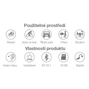 Originálna a patentovaná technológia umožňujúca užívať si počúvanie hudby nielen pri plávaní. Slúchadlá sú vhodné aj na beh a ďalšie športy, pretože vďaka otvorenej konštrukcii počujete okolitý zvuk.