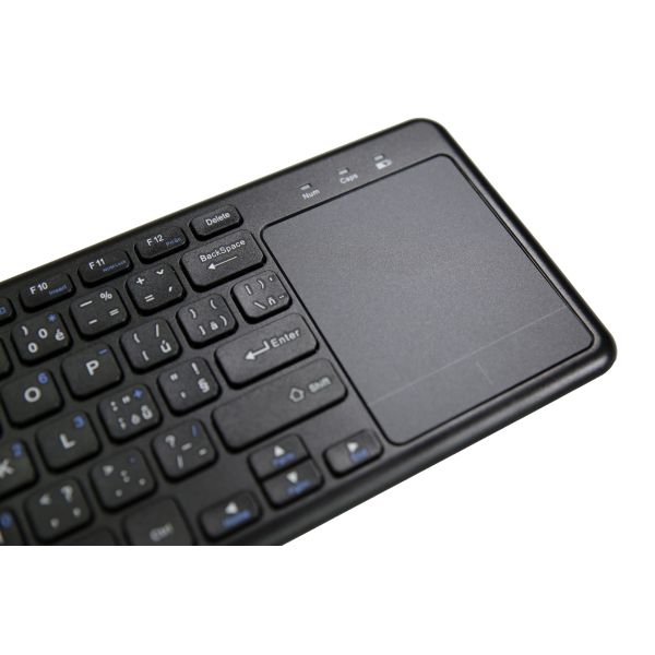 Všestranná 2.4GHz bezdrôtová klávesnica s touchpadom. Ideálne pre ovládanie Smart televíziou, multimediálnych centier, HTPC počítačov, apod. Môžete tiež použiť s notebookom alebo klasickým PC, ak chcete diaľkovo ovládať svoj počítač.