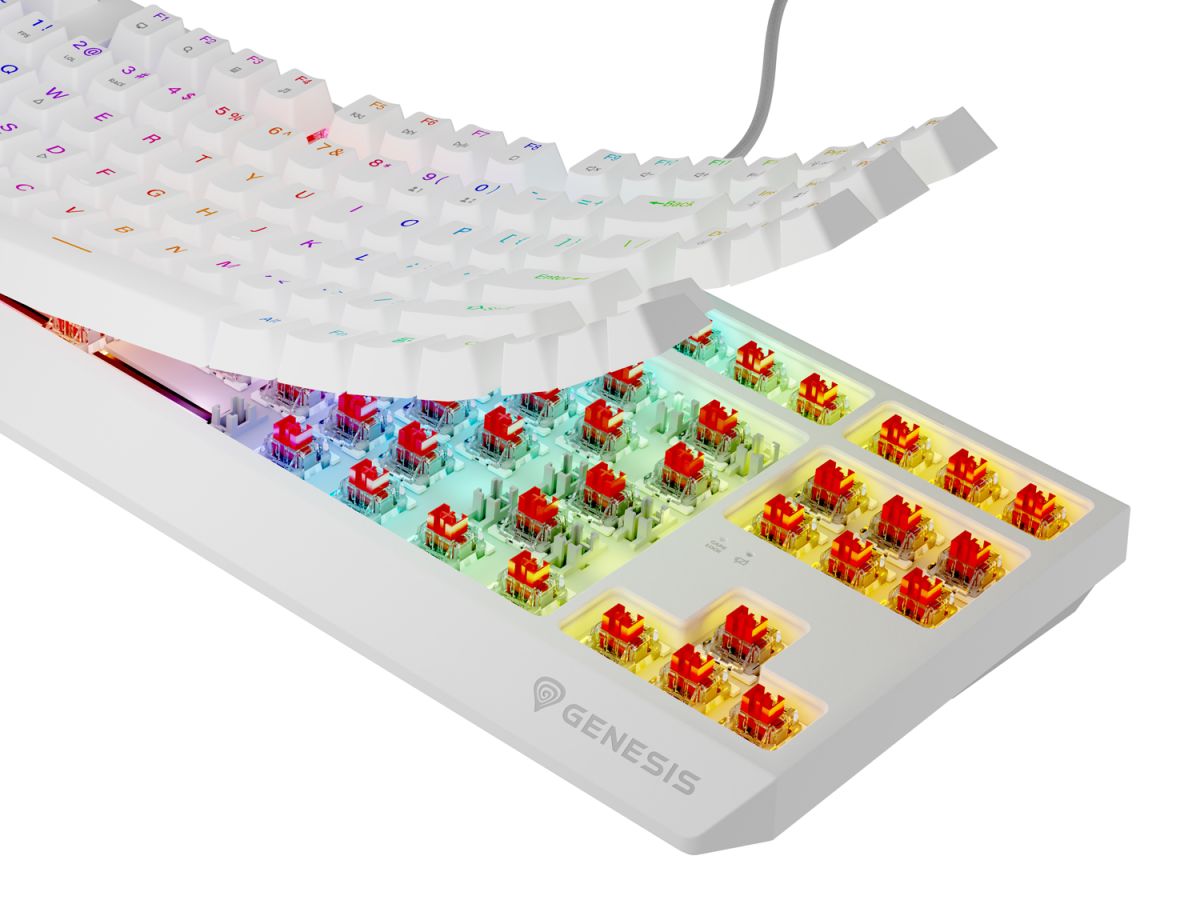 Klávesnicu Genesis Thor 230 TKL sme vybavili lineárnymi spínačmi Outemu Red, ktoré vynikajú vysokou presnosťou, aktiváciou bez ohledu na miesto stlačenia klávesu a vysokou dynamikou. Vieme však, že ako hráč môžete mať svoje vlastné preferencie. Preto sme do Genesis Thor 230 TKL implementovali Hot Swap - techniku, ktorá vám umožní nahradiť akýkoľvek trojpinový mechanizmus mikrospínačom od spoločností ako Outemu, Akko, KTT. Jednoducho vytiahnite nainštalovaný mechanizmus a zapojte nový. Vďaka systému Hot Swap tiež nemusíte kupovať novú klávesnicu, keď jeden spínač selže. Vymeníte ho v priebehu niekoľkých sekúnd. Je to jednoduché.