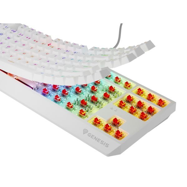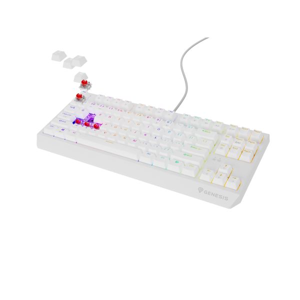 Genesis herná klávesnica THOR 230/TKL/RGB/Outemu Red/Drátová USB/US layout/Biela NKG-2078