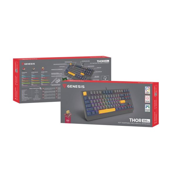 S Genesis Thor 230 TKL dosiahnete na viac - úplne nový neplávajúci dizajn kombinujúci systém Hot Swap, klávesy s potlačou Double Injection, tlumiacu penu a predmazané stabilizátory, a to nie je všetko. Vylepšite svoje zručnosti a siahnite po funkčných riešeniach. To je Genesis Thor 230 TKL.