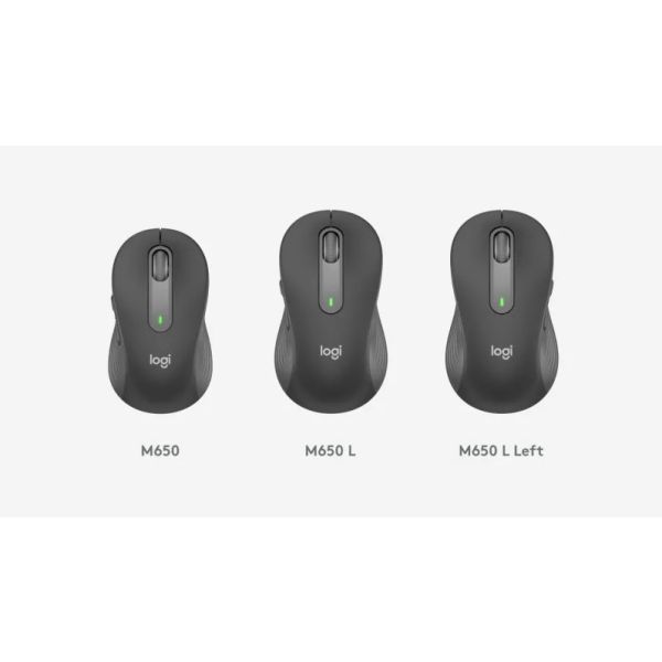 Vyberte si myš Signature M650, ktorá vám bude najlepšie vyhovovať. Model M650 odporúčame pre malé až stredné ruky, model M650 L pre veľké ruky a model M650 L Left pre ľavákov. Nie ste si istý, ktorá myš je pre vás najvhodnejšia? Pozri obrázok a rozmery.