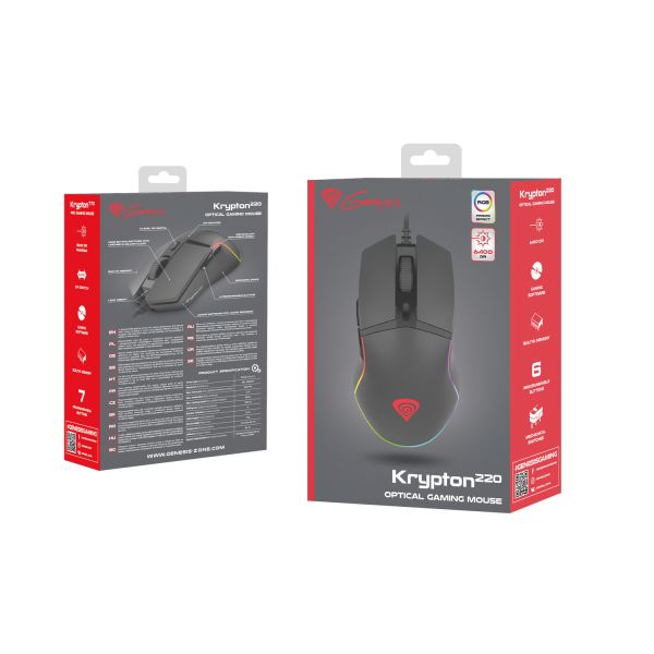 Genesis herná optická myš KRYPTON 220/RGB/6400 DPI/Herná/Optická/6 000 DPI/Drátová USB/Čierna NMG-1770