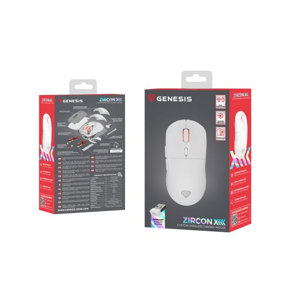 Zoznámte sa s jednou z najpokročilejších myší na trhu. Predstavujeme vám GENESIS Zircon XIII s konštrukciou ponúkajúcou všetko, čo skutočne potrebujete. Plné prispôsobenie hardvéru (vymeniteľné spínače, vzdialenosti, pružiny), jeden z najlepších snímačov na svete (Pixart PAW3395) a technológie bezdrôtového pripojenia (RapidSpeed™ Wireless) pre skutočne drôtový výkon, a to nie je všetko. S GENESIS Zircon XIII hra ešte len začína.