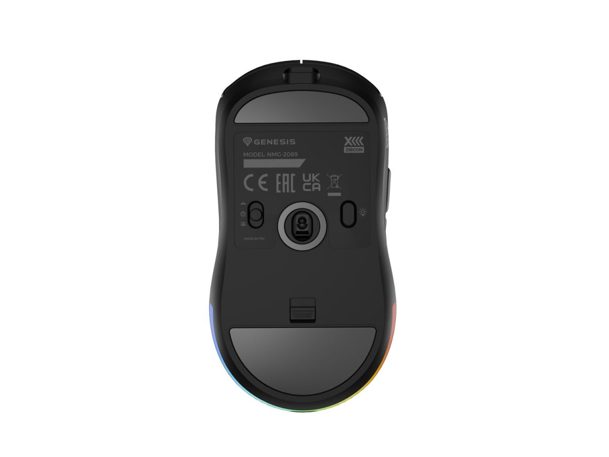 Nezabudli sme ani na ďalšie funkcie, vďaka ktorým bude používanie GENESIS Zircon XIII rýchle a jednoduché. Posuvník umiestnený v spodnej časti vám umožní prepínať medzi drátovým režimom, bezdrôtovým režimom a vypnúť podsvietenie. Špeciálne tlačidlo vám zase umožní zmeniť režim podsvietenia. V kombinácii s vstavanou pamäťou a pokročilým softvérom tak získate takmer neobmedzené možnosti a slobodu používania.