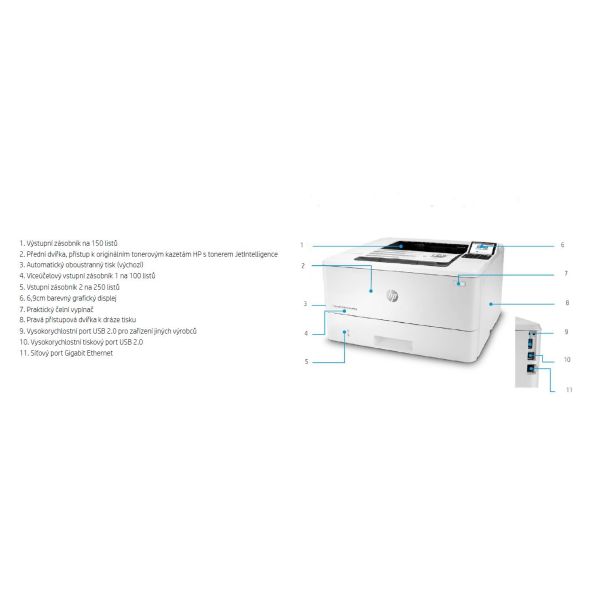 Obsah balenia: Tlačiareň HP LaserJet Enterprise M406dn; Čierna originálna tonerová kazeta HP LaserJet (cca 3 000 strán); Príručka Začíname; 1x napájací kábel