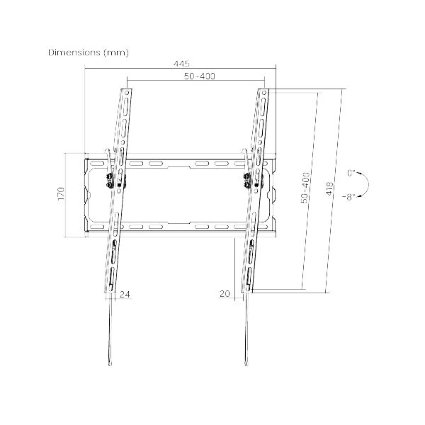 • Voľne sklopiteľná konštrukcia pre jednoduchú zmenu náklonu TV v uhle 0°~-8°