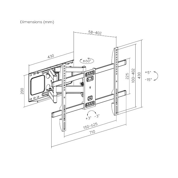 • Výsuvná konštrukcia s možnosťou stranového natočenia v rozsahu +60°~-60°