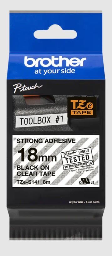 Originálna kazeta s laminovanou páskou TZe-S141 kompatibilná so širokou radou tlačiarní Brother P-touch je obzvlášť všestranná vďaka svojej ľahko čitateľnej čiernej a priesvitnej farbe - ideálna pre domácnosť domácnosti, kanceláriu a ďalšie pracoviská. *Šírka 18 mm, dĺžka 8 m *Vysoko kvalitná originálna kazeta Brother *Zaistí trvanlivé, jednoducho čitateľné výtlačky Výsledné štítky majú NOVO vylepšené lepivé vlastnosti. Boli vyvinuté s dôrazom na trvanlivosť v extrémnych podmienkách (aby odolávali extrémnym teplotám, slnečnému žiareniu, vode, chemikáliám, oderu,....). Vďaka silnému lepidlu sa štítky vyznačujú extrémnou priľnavosťou a sú ideálne na použitie na zrnitých površích, ako sú kovové skrine, strukturované plasty a ďalšie predmety bez hladkých povrchov. Drží trikrát väčšou silou (aj na textúrovanom povrchu) ako štandardná páska.