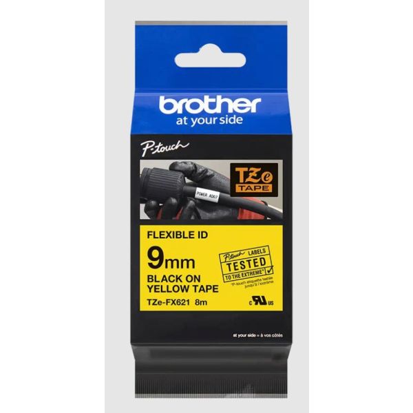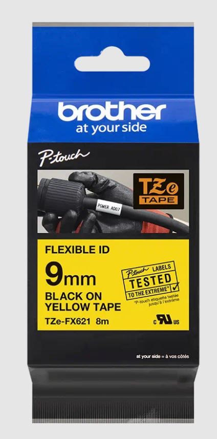 Ideálne na vytváranie identifikačných štítkov pre káble, vodiče, PVC trúbky alebo iné valcovité tvary. Špeciálne lepidlo pásky Brother TZe-FX621 s černým tlačou na žltom podklade zaisťuje, že vaše dôležité štítky budú mať dlhú životnosť. Kompatibilný s tlačiarňami štítkov P-touch, ktoré majú logo TZ alebo TZe na kryte kazety s páskou. *Šírka 9 mm, dĺžka 8 m *Vysoko kvalitná originálna kazeta Brother *Zaistí trvanlivé, jednoducho čitateľné výtlačky Sú ideálne pre značenie káblov s priemerom menším ako 8mm. TZE-FX štítky sú vyvinuté tak, aby odolávali extrémnym teplotám, slnečnému žiareniu, vode, chemikáliám a oderu.