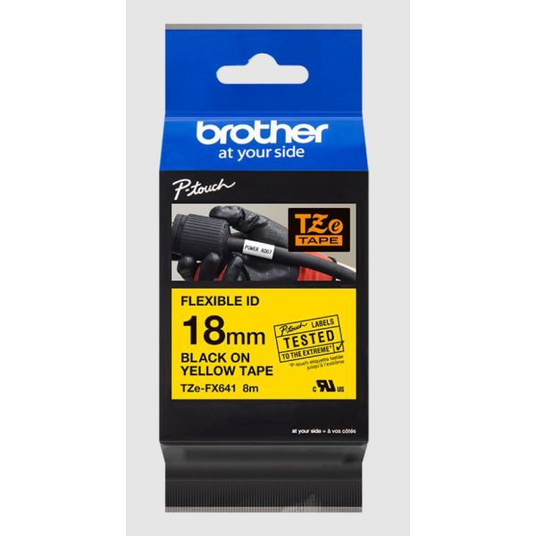 Ideálne na vytváranie identifikačných štítkov pre káble, vodiče, PVC trúbky alebo iné valcovité tvary. Špeciálne lepidlo pásky Brother TZe-FX641 s černým tlačou na žltom podklade zaisťuje, že vaše dôležité štítky budú mať dlhú životnosť. Kompatibilný s tlačiarňami štítkov P-touch, ktoré majú logo TZ alebo TZe na kryte kazety s páskou.