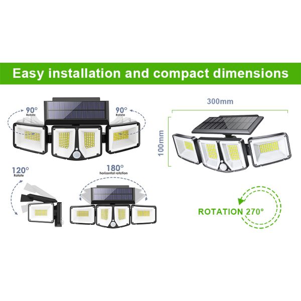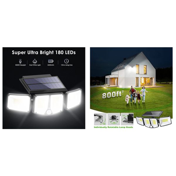 Solárne LED svetlo so 180 vysoko svietiacimi LED diódami je ideálne na osvetlenie vonkajších priestorov bez možnosti pripojenia k elektrickej sieti, ako je napr. záhrada, vstup do domu atď. Vďaka solárnemu napájaniu je LED svetlo úplne sebastačné a nezávislé na napájaní z elektrickej siete. Jeho inštalácia je veľmi jednoduchá. Ste schopní osvetliť akékoľvek priestory za niekoľko okamihov a bez ďalšej potreby kabeláže.