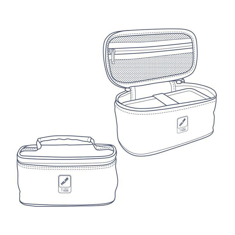 Izotermická taška na potraviny so zapínaním na suchý zips. Obsahuje:- dva hermetické plastové boxy so skrutkovacím vekom a objemom 0,25 L Tepelne izolovaný interiér (studený/teplý) pre lepšie uchovanie potravín.Horná rukoväťs prackou umožňuje tašku pripnúť / odopnúť. Textilné zloženie: polyuretánová vonkajšia tkanina a izotermická vnútorná podšívka (PEVA).Desiatové boxy sú zo zdravotne nezávadného PVC bez BPA. Objem: 3,5 litra