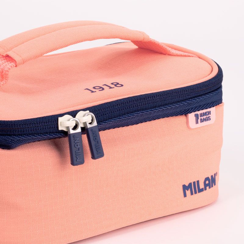 Izotermická taška na potraviny - špeciálna séria 1918 v zelenej farbe. Vo vnútri je obdĺžnikový desiatový box s ružovým vekom a modrou rukoväťou. V hornej časti je integrovaná kapsa so zipsom. Úplné otváranie pre lepšiu dostupnosť a čistenie. Textilné zloženie: polyesterová vonkajšia tkanina "Ripstop" (ľahká a odolná voči roztrhnutiu) a izotermická vnútorná podšívka (PEVA) Objem: 1,5 litra.