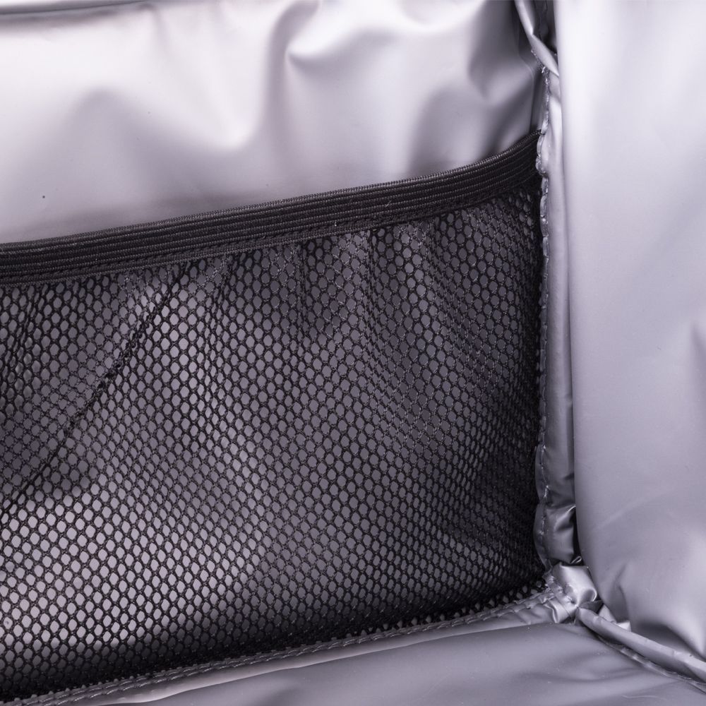 Veľkokapacitná, izotermická taška na potraviny vyrobená z mäkkej polyesterovej tkaniny, mierne lesklá a príjemná na dotyk.