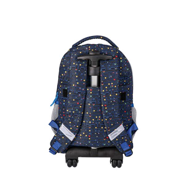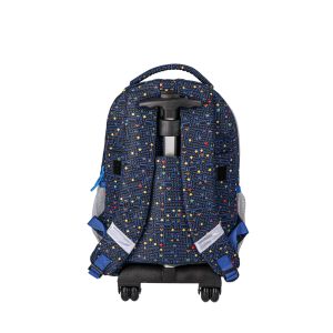 Školský batoh na kolieskach SPIRIT TROLLEY vodeodolný materiál ultra ľahký a pohodlný 3 zipsy, 3 priehradky nastaviteľné ramenné popruhy plastová výsuvná rukoväť 2 plastové kolieska v spodnej časti batohu pevná a stabilná základňa hmotnosť: 2200 g objem: 30 L